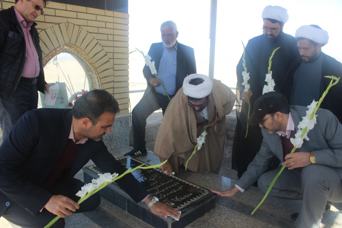حضور کارکنان و دانشجویان در مراسم عطر افشانی و غبار روبی مزار شهداء